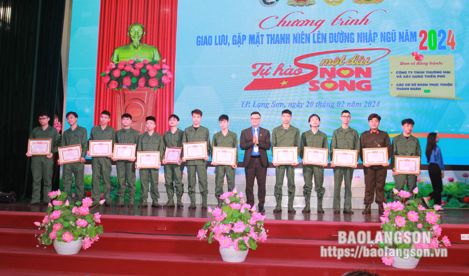 Nhân dịp này, Thành đoàn Lạng Sơn đã tặng giấy khen cho thanh niên viết đơn tình nguyện lên đường nhập ngũ năm 2024. Cùng đó, Ban tổ chức chương trình cũng tặng quà cho các tân binh lên đường nhập ngũ.