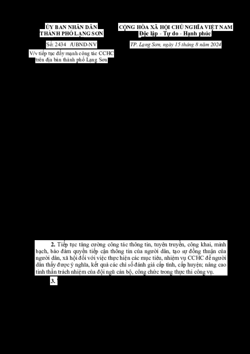 | Tiêu đề văn bản | V/v tiếp tục đẩy mạnh công tác CCHC trên địa bàn thành phố Lạng Sơn | ||