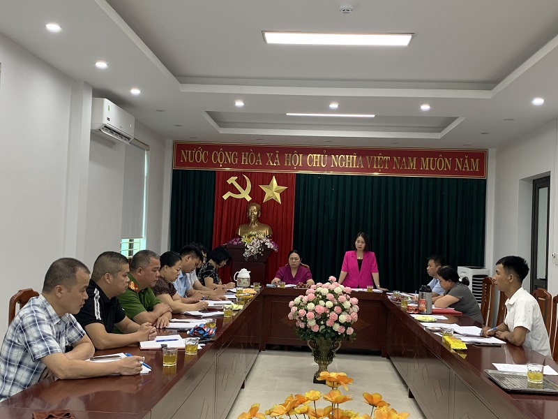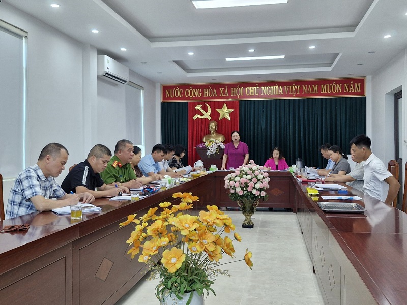 Đồng chí Nông Thị Hương Giang, Bí thư Đảng ủy xã chủ trì cuộc họp và phát biểu chỉ đạo